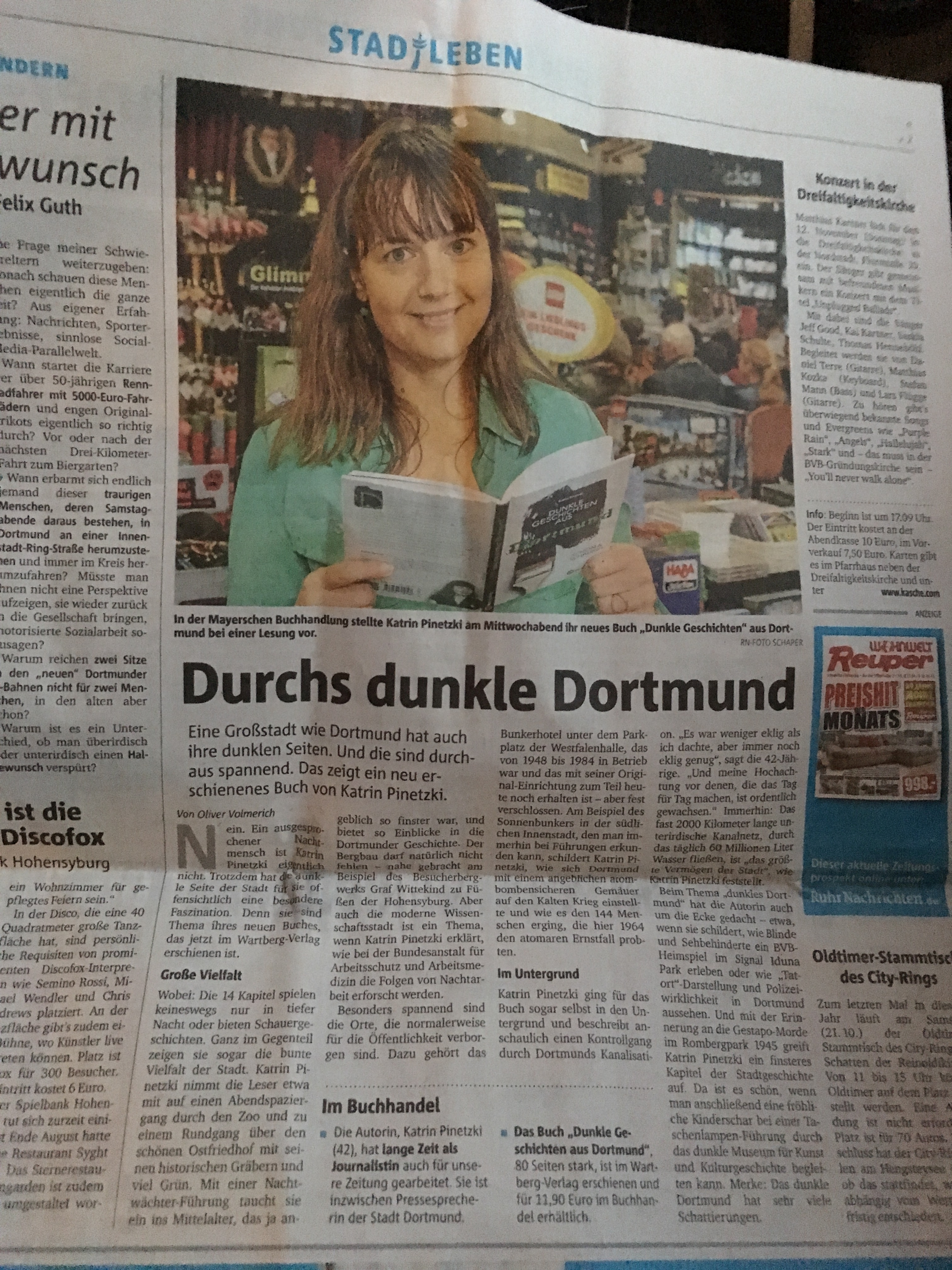 - Ruhr24.de vom 29.10.2019: „Katrin Pinetzki: Auszug aus „Dunkle Geschichten aus Dortmund“ exklusiv bei Dortmund24″