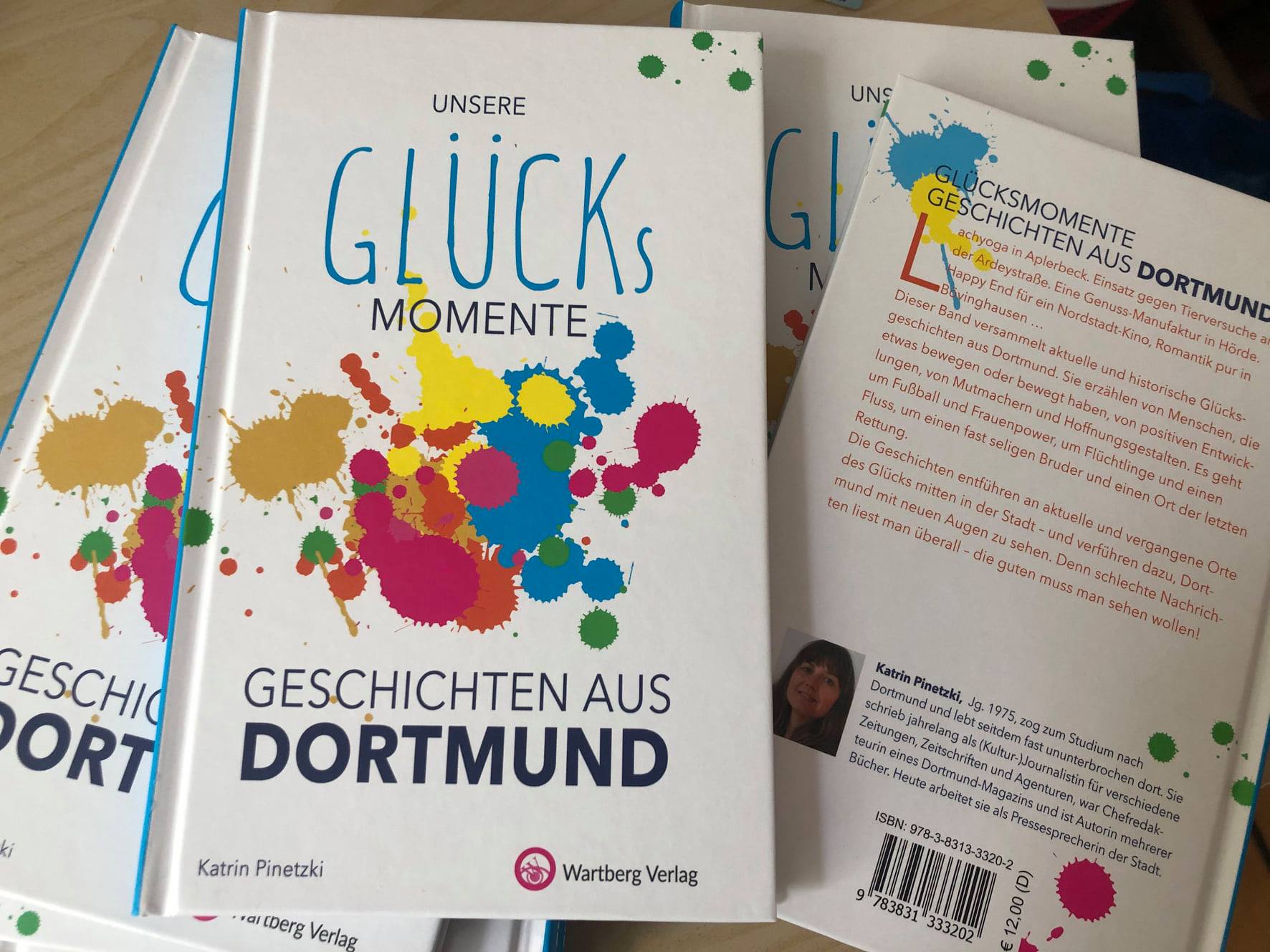 Mein neues Buch „Unsere Glücksmomente. Geschichten aus Dortmund“ versammelt aktuelle und historische Glücksgeschichten aus Dortmund. Sie erzählen von Menschen, die etwas bewegen oder bewegt haben, von positiven Entwicklungen, von Mutmachern und Hoffnungsgestalten. Es geht um Fußball und Frauenpower, um Flüchtlinge und einen Fluss, um einen fast seligen Bruder und einen Ort der letzten Rettung. Die Geschichten entführen an aktuelle und vergangene Orte des Glücks mitten in der Stadt – und verführen dazu, Dortmund mit neuen Augen zu sehen. Denn schlechte Nachrichten liest man überall – die guten muss man sehen wollen!